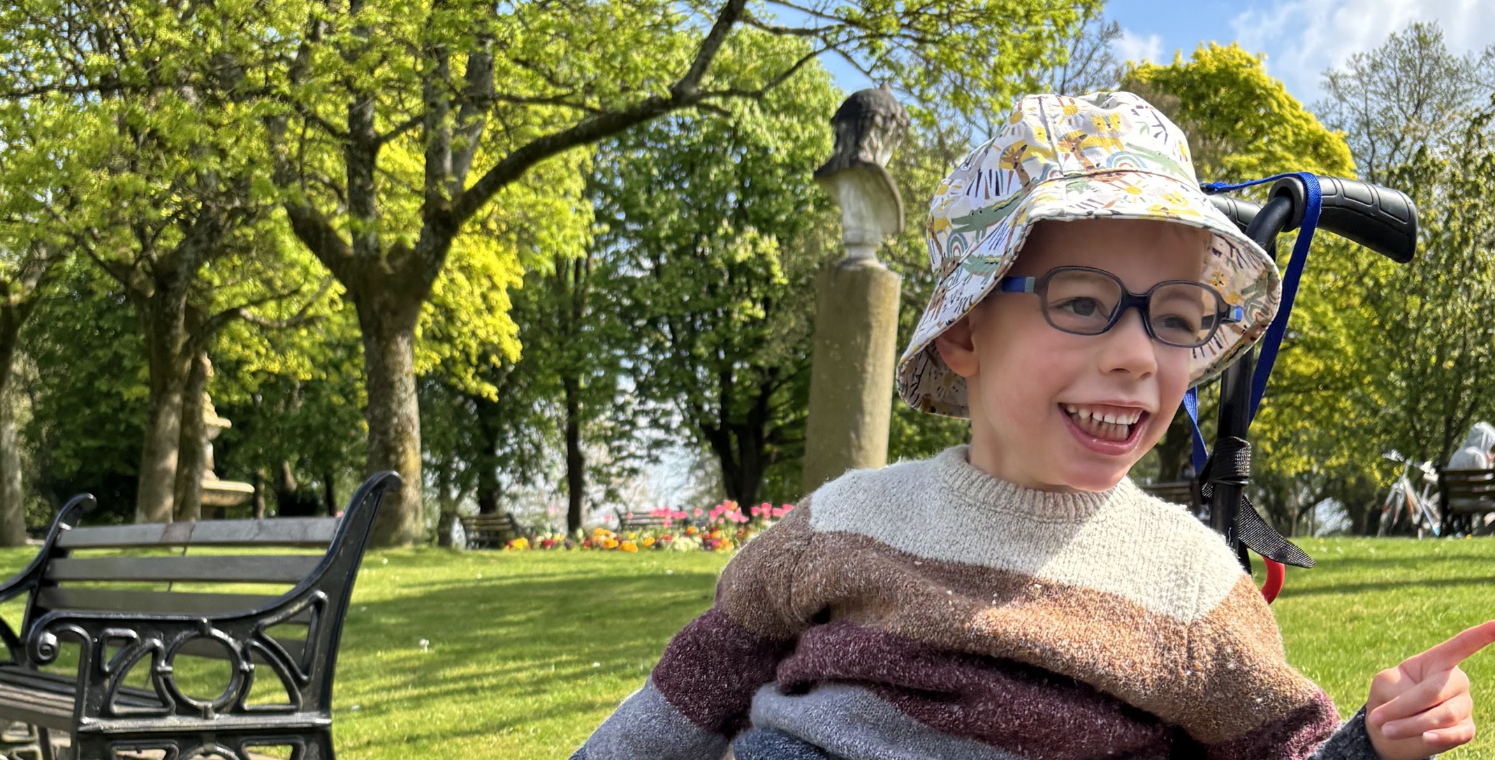 ‘However he can communicate to a degree through Makaton, and often gets frustrated when his hands can’t keep up with his thoughts! He enjoys, books, animals and watching any form of motorsports.’
